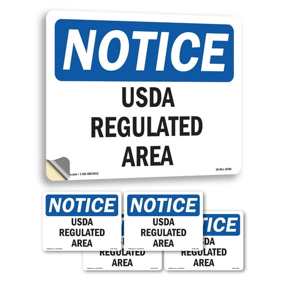 USDA Regulated Area OSHA Notice Vinyl Decal Label 10 Inch x 7 Inch - 5 Pack