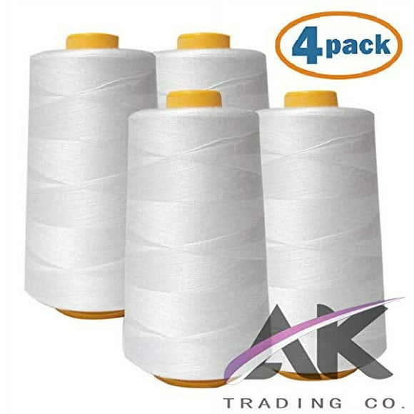 AK Trading 4-Pack White All Purpose Sewing Thread Cones (6000 Yards Each) of High Tensile Polyester Thread Spools for Sewing, Quilting, Serger Machines, Overlock, Merrow & Hand Embroidery. $12.71