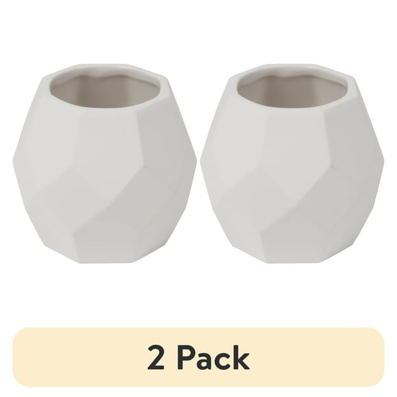 (2 pack) Hello Hobby Paintable Small Ceramic Geometric Planter, White