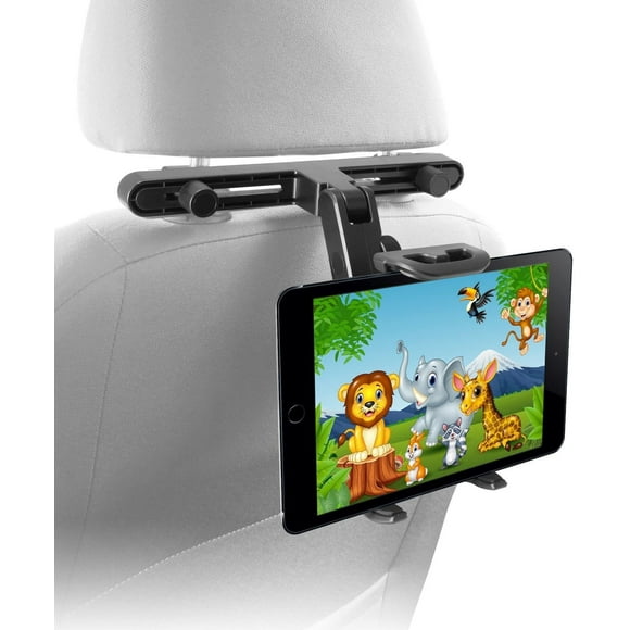 Macally Car Headrest Mount - Road Trip Essentials for Kids - Back Seat Tablet Holder for Car, for iPad Pro/Air/Mini, Nintendo Switch, Phones with Dual Positions and 360° Rotation