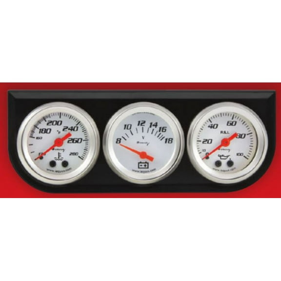 current price $54.99Equus 5200 5000 Series Triple Gauge Set; Incl. 2 in. Water Temp. Gauge; 2 in. Voltmeter; 2 in. Oil Pressure Gauge; 270 Degree Sweep; w/Black Panel;