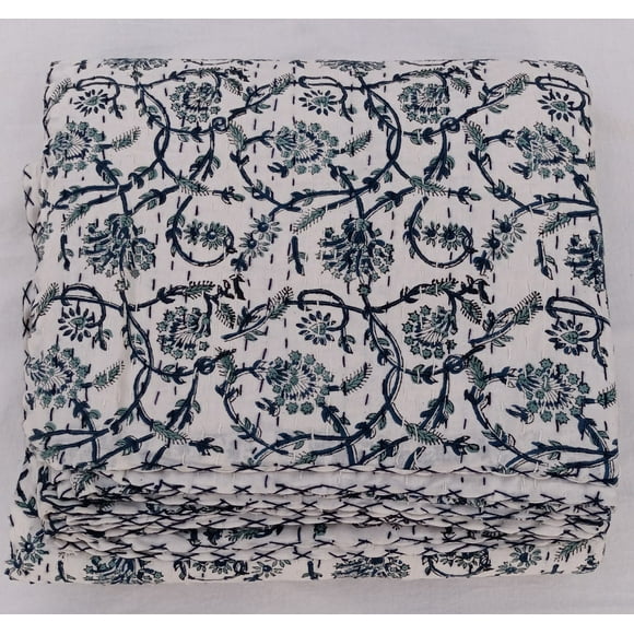 current price $54.00Indian Cotton Floral Kantha Quilt Boho Bedspread Ethnic Bedding Throw Handmade Bohemian 100% Cotton Single Size Quilted