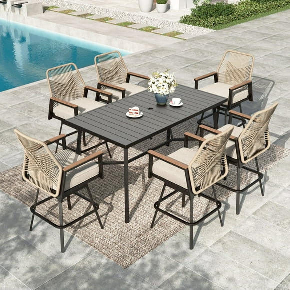 MF Studio 7-Piece Outdoor Patio Swivel Bar Set Dining Set, All-Weather Rattan Bar Height Table Set with Removable Cushions, 67” Rectangle Bar Table $1,299.99 Was $1,659.99