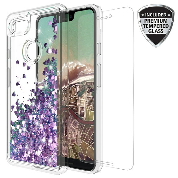 current price $9.99Google Pixel 3 Case With Tempered Glass Screen Protector, KAESAR Quicksand Glitter Sparkly Bling Liquid Shiny Clear Soft TPU Bumper Protective Cover for Google Pixel3 (Purple)