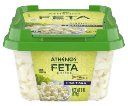 Athenos Crumbled Traditional Feta Cheese 6 oz, Refrigerated, Plastic Tub $4.42 73.7 ¢/oz
