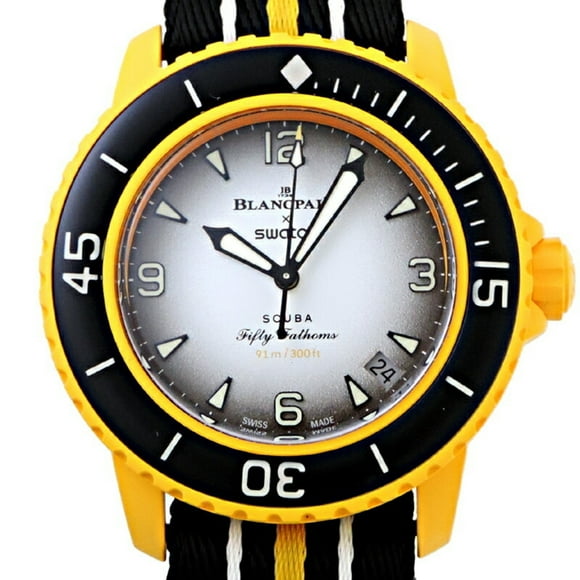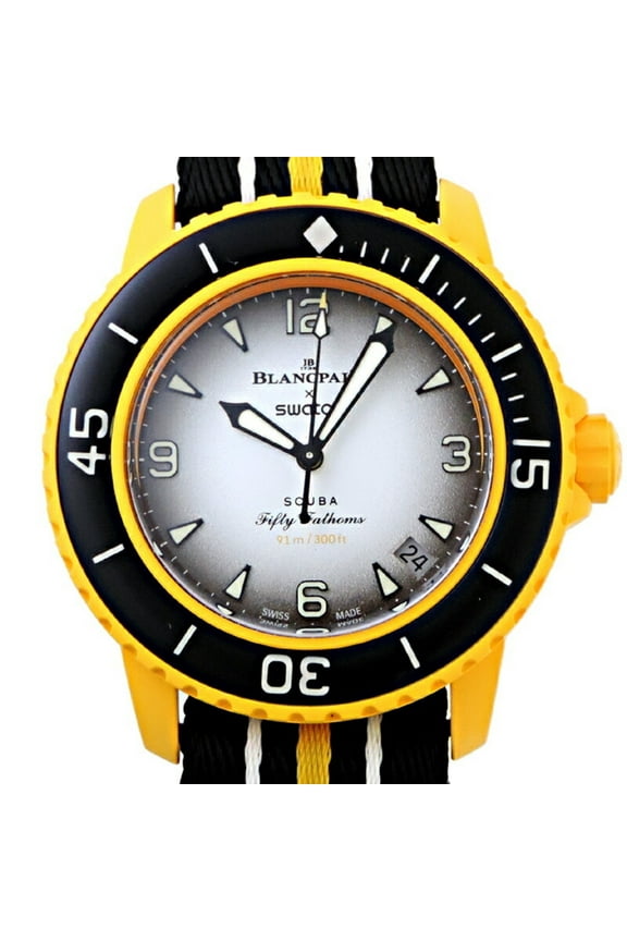 Pre-Owned Swatch x Blancpain Fifty Fathoms Pacific Ocean Men's Watch SO35P100 (Good)