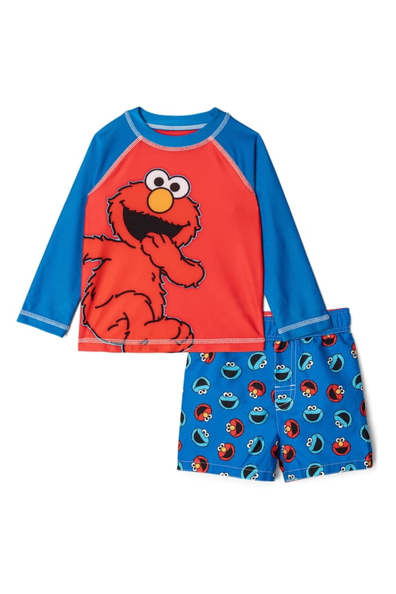 Elmo Cookie Monster Raglan Rash Guard and Swim Trunks UPF 50+ Outfit Set Infant to Toddler