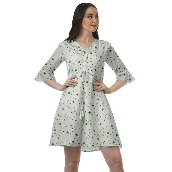 Party Dress For Women Scoop Neck Moss Georgette 3/4 Sleeve Tunic Dress $21.99