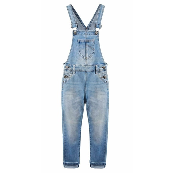 Girls Washed Distressed Denim Ripped Cotton Jean Overalls,Light Blue,13-14 Years