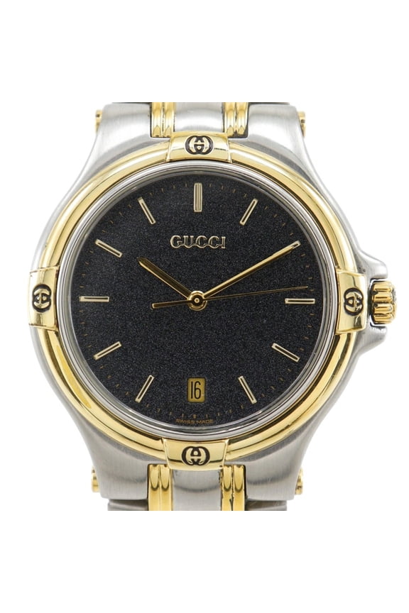 Pre-Owned Gucci GUCCI Watch 9040M Stainless Steel Quartz Analog Black Dial Men's (Good)Free shipping, arrives in 3+ days