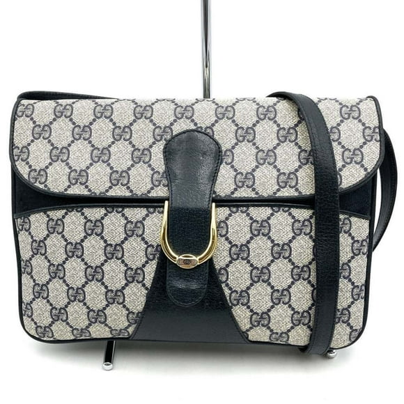 Pre-Owned GUCCI Old Gucci Shoulder Bag GG Supreme Leather Navy for Men and Women (Fair)Free shipping, arrives in 3+ days