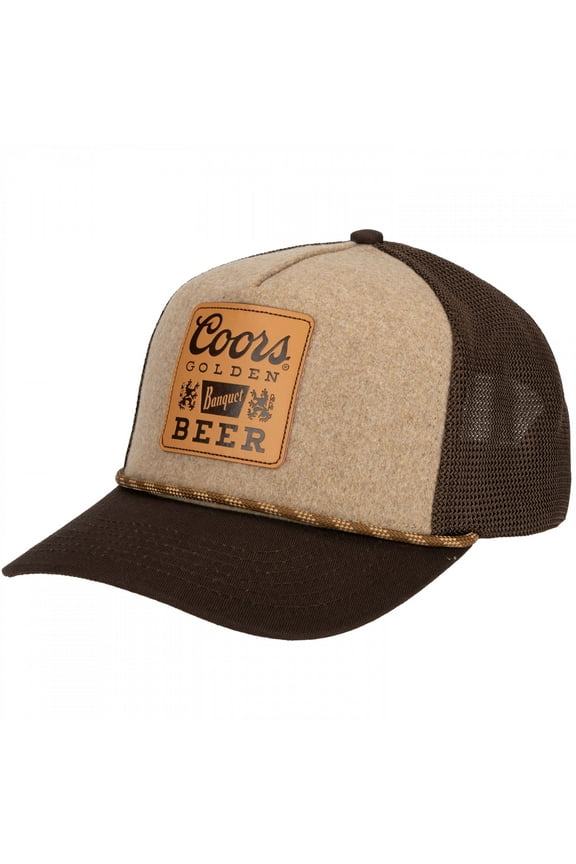 887597 Banquet Golden Beer Leather Patch Logo Trucker Hat $27.98