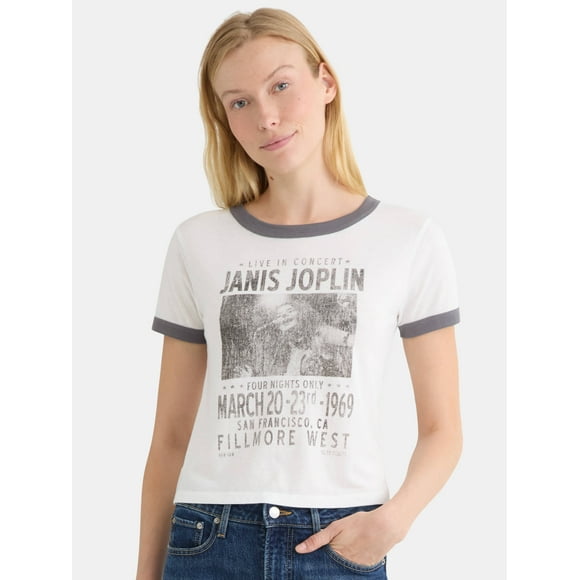 - Janis In Concert - Juniors Cropped Short Sleeve Graphic T-ShirtFree shipping, arrives in 3+ days