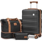 Joyway 3-Piece Luggage Set 20-Inch Carry-On Suitcase with Spinner Wheels TSA Lock Travel Duffel Bag and Toiletry Bag Hardside Lightweight Luggage Black $54.99 Was $95.99