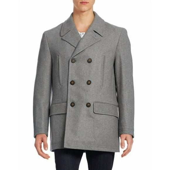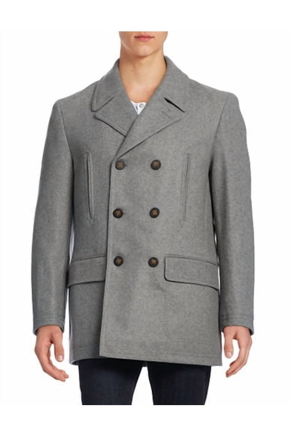 Luke Wool-Blend Classic-Fit Peacoat Coat 46L Grey $97.04 Was $209.98
