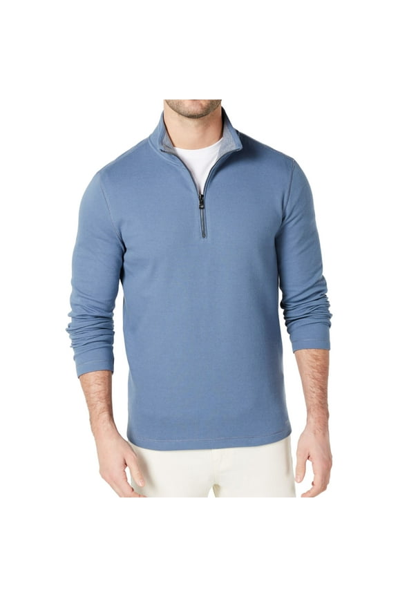 Mens Layering Collared 3/4 Zip Pullover Sweater, Blue, X-Large $65.91