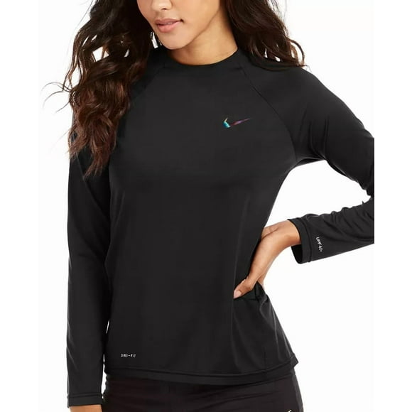 Women's Essential Long Sleeve Rash Guard Swimsuit Black Size Large $39.99