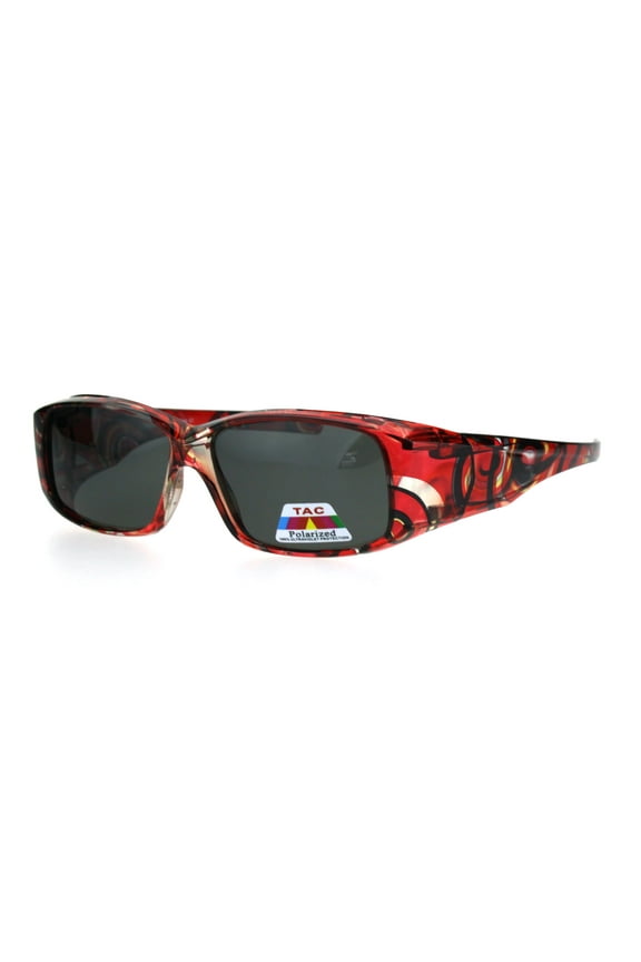 Polarized Womens Rectangular 57mm Fit Over Sunglasses Translucent Red