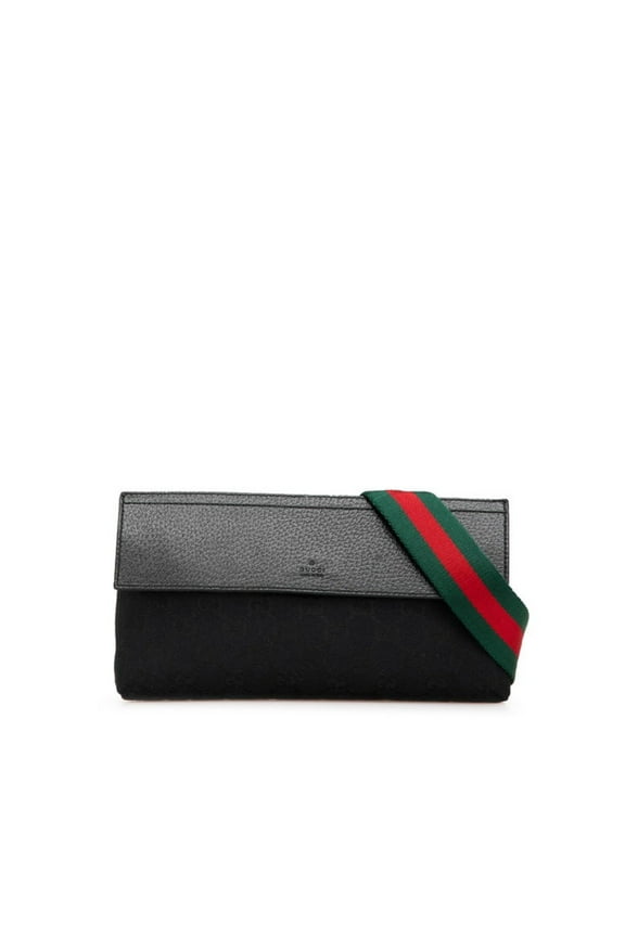 Pre-Owned Gucci GG Canvas Waist Bag Body 180691 Black Leather Women's GUCCIFree shipping, arrives in 3+ days