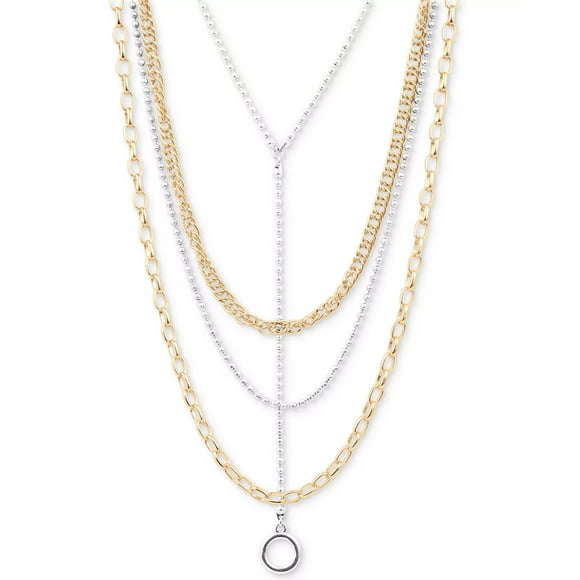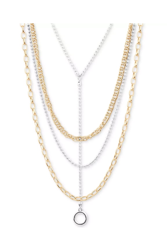 Two-Tone Open Circle Mixed Chain Layered Lariat Necklace, 18" + $48.99