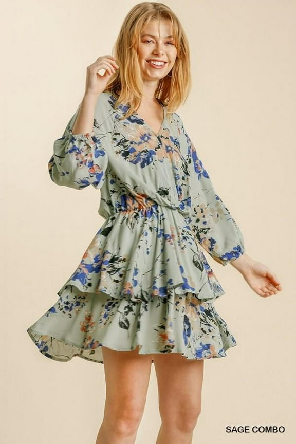 Floral Print Layered Ruffle Mini Dress $49.99