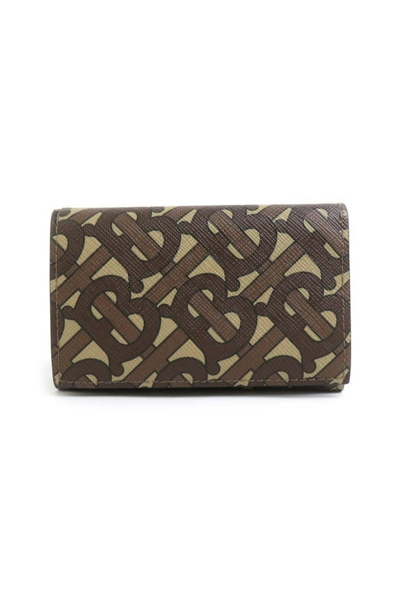 Pre-Owned BURBERRY TB Monogram Compact Tri-fold Wallet, Brown, Unisex (Good) $310.00