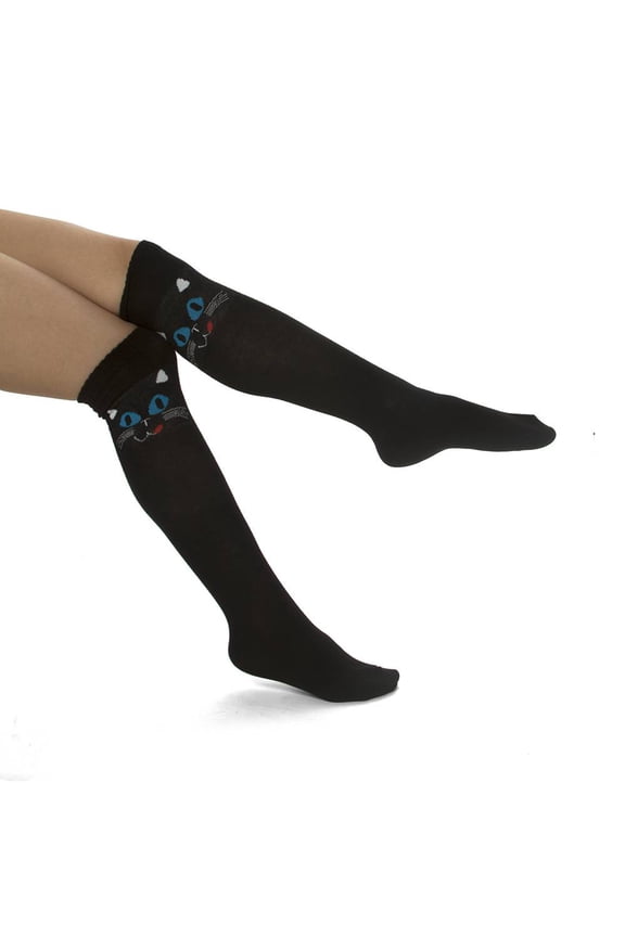 Pattern Design Knee Length Socks, Black Cat $6.45 $6.45/count
