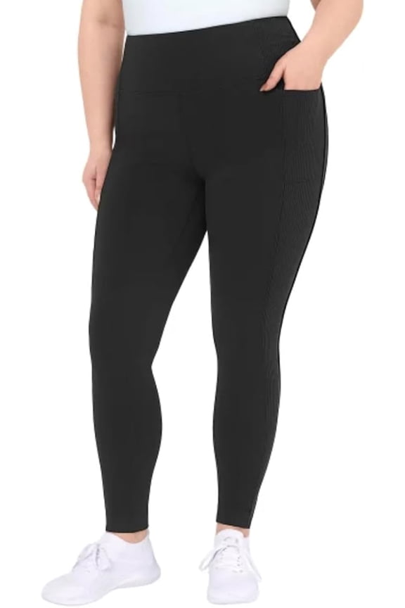 Womens High Rise Ribbed Panel Legging Tight (Black, Medium) $38.95