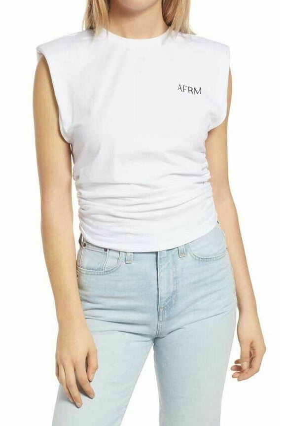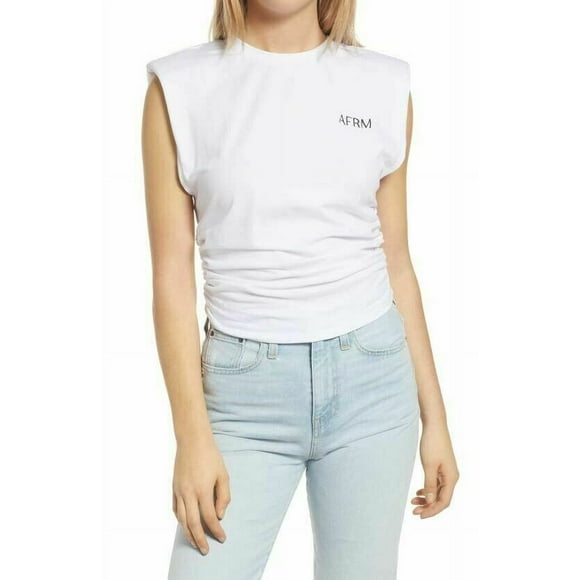 Bille Side Ruched Shoulder Pads Cropped Muscle Tank Top in White XS, NWT $18.00