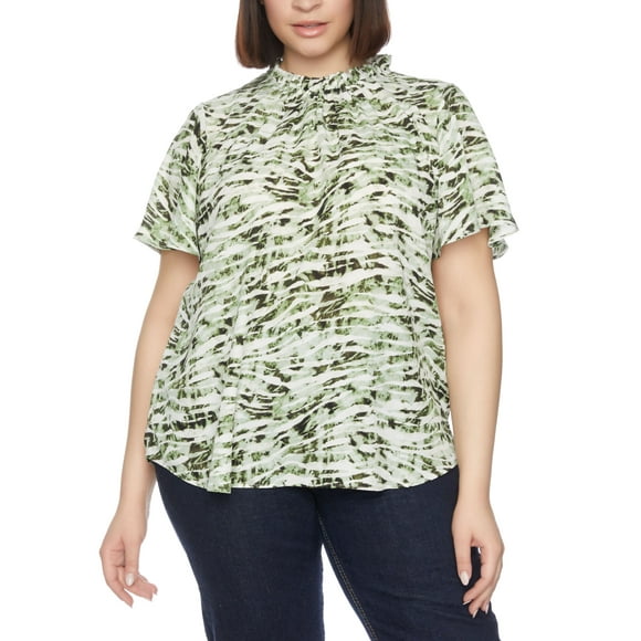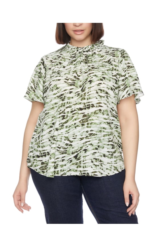 Plus Size Short Sleeve With Ruffle Neck Blouse Top Zebra Sage 2X $65.00 $4.64/oz
