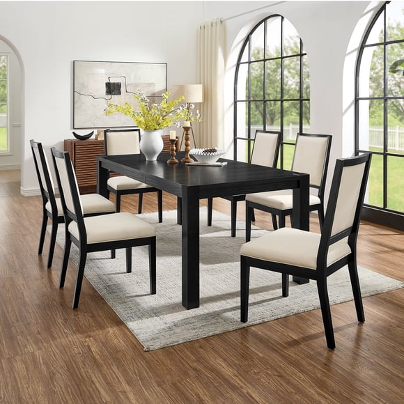 Flash Deal Amerlife 7-Piece Solid Wood Dining Table Set, 60" Farmhouse Dining Table with 6 Chairs, Dining Table Set for 6, Kitchen & Dining Room, Black $409.98 Was $446.49