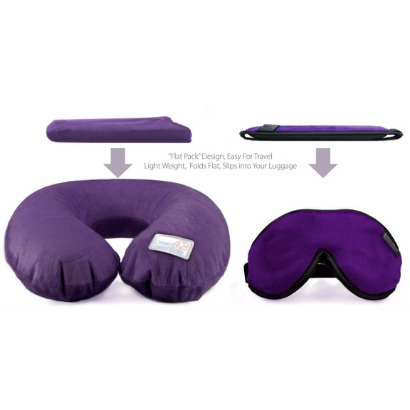 Dream Essentials Travel Flat Pack Neck Pillow Plus Escape Sleep Mask Bundle -Purple $19.95