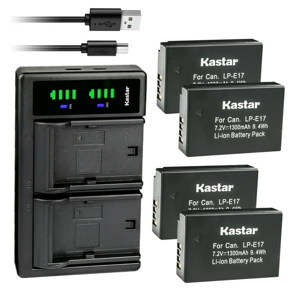 Kastar 4-Pack Battery and LTD2 USB Charger Replacement for Canon LP-E17 LPE17, 9967B02 Battery, BG-E18 IR Battery Grip, Canon EOS R8, EOS R50, EOS R100 Mirrorless, EOS 200D, EOS750D, EOS850D Camera