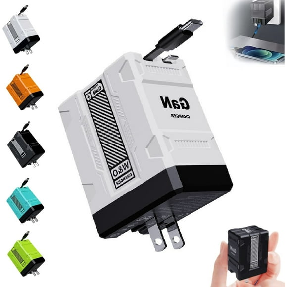 2-in-1 Gan 120w Fast Charger, 2025 New Gan Smart Charger, Retractable Scalable Super Fast Charger Module, All in 1 Foldable Charging Adapter Wall Plug for Phone, Tablet, Laptops (White) $21.94