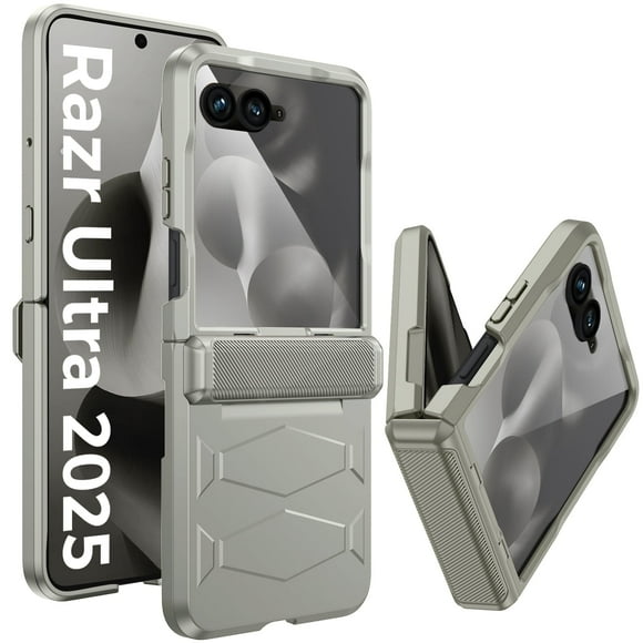 Best seller Vizvera for Motorola Razr Ultra 2025 Case with Hinge Cover,Built-in Screen Protector Shockproof All-Inclusive Cover Wireless Charging-Titanium $19.79