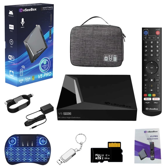 current price $300.00VSeeBox V5 Pro 2025 Version with Voice Control, Android 12, 4GB RAM 32GB Storage,8K Cable Included, Easy Setup, Lifetime Support
