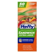 100+ bought since yesterday Hefty Press to Close Extra Large Sandwich Food Storage Bags, 50 Count $2.87 5.7 ¢/count