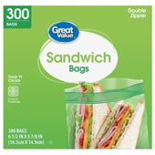 In 100+ people's carts Great Value Double Zipper Sandwich Bags, 300 Count $5.78 1.9 ¢/count