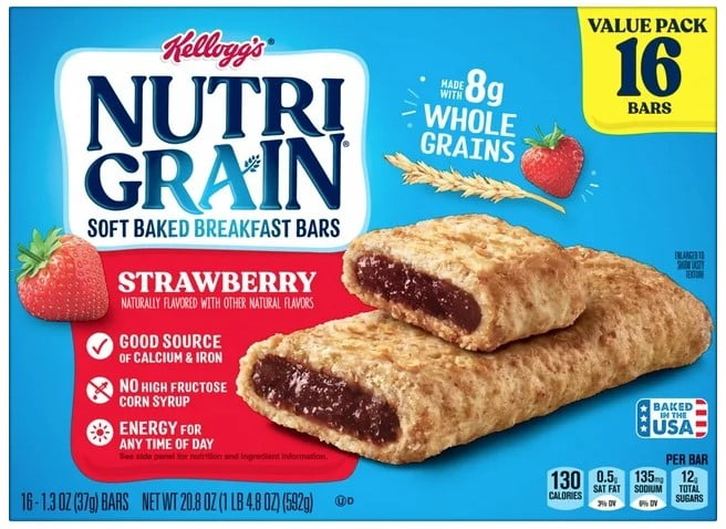 (12 pack) Great Value Fruit & Grain Cereal Bars, Blueberry, 1.3 oz, 8 Count $25.58 20.5 ¢/oz