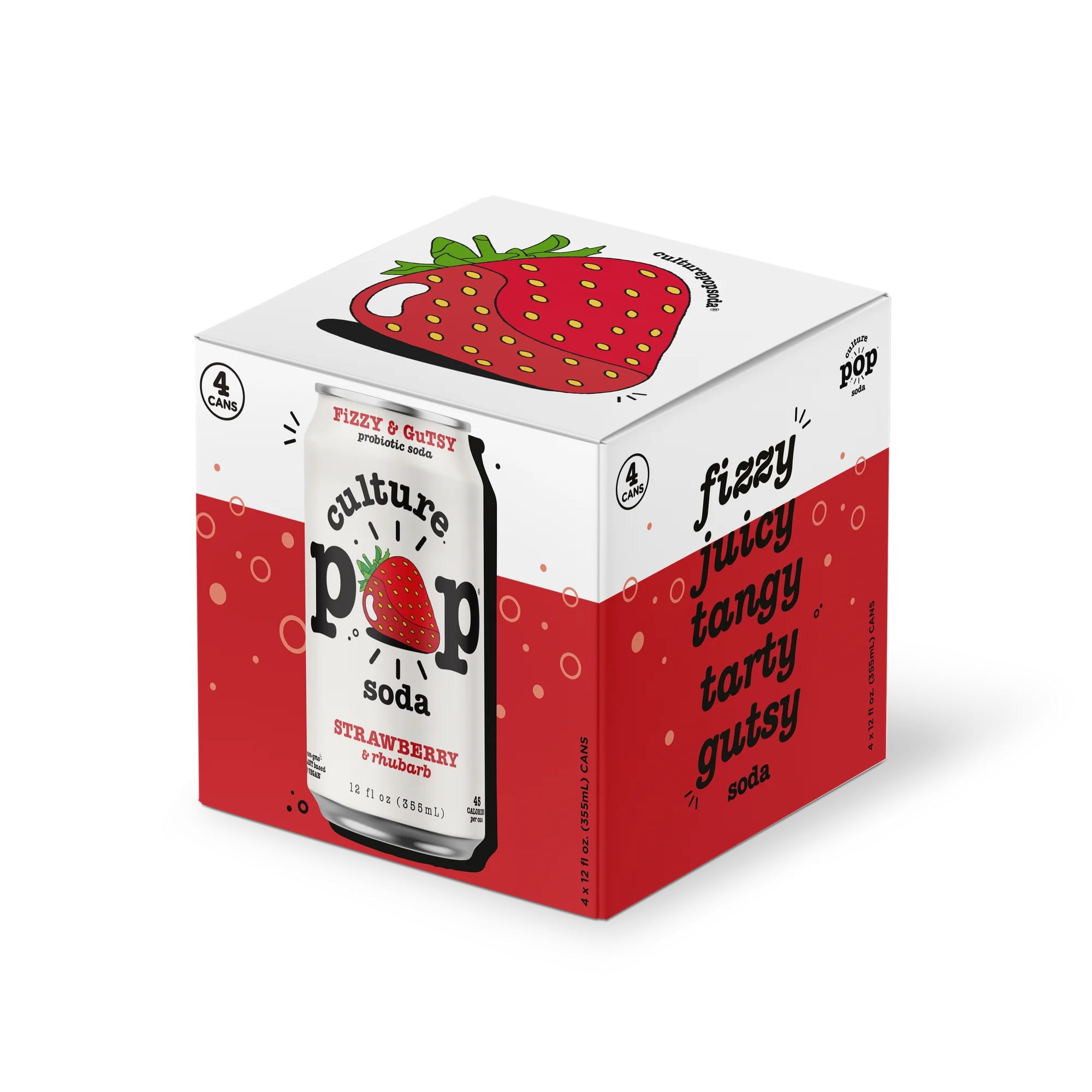 (12 pack) Culture Pop Soda Strawberry Rhubarb, Probiotic Soda, 12 fl oz
