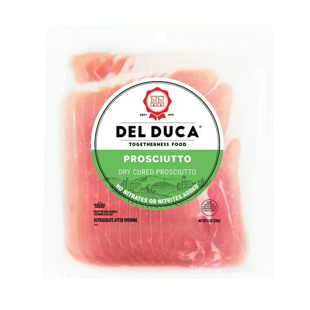 Del Duca, Dry Cured Prosciutto, Sliced Pork Deli Charcuterie Meat, 6 oz Plastic Tray, Serving Size 1 oz, 9 Grams of Protein per Serving $7.94 $1.32/oz