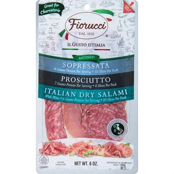 Del Duca, Uncured Pork Variety Pack, Spicy Deli Charcuterie Meat, 6 oz Plastic Tray, Serving Size 1 oz, Minimum of 6 Grams or Protein per Serving $7.94 $20.90/lb