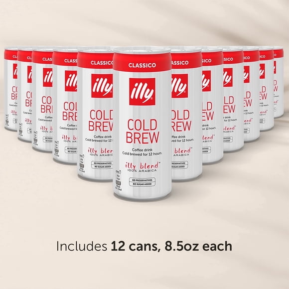 Illy Cold Brew Coffee, Ready-to-Drink, Classico, 100% Arabica, 12 Pack