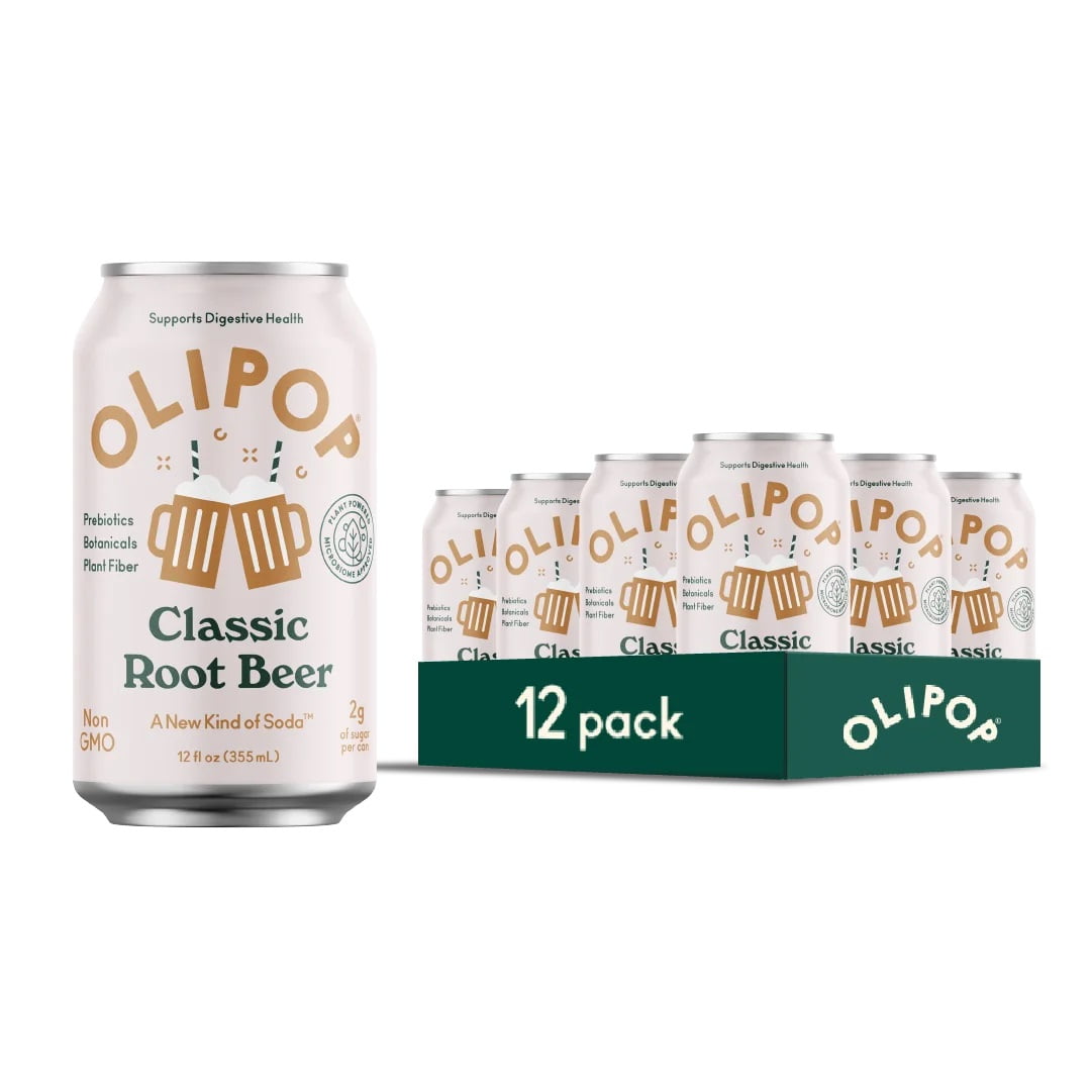 OLIPOP Prebiotic Soda, Classic Root Beer, 12 fl oz, Pantry Packs
