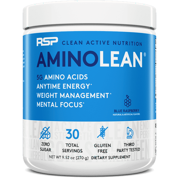 current price $27.50RSP Nutrition AminoLean Pre Workout Powder with BCAAs, Amino Energy for Lean Muscle, Blue Raspberry Flavor, 30 Servings
