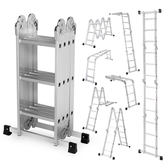 Flash Deal BETISEF 12.5ft 7 in 1 Multi-Purpose Ladder, Folding Aluminium Extension Ladder w/Anti-Slip Feet, EN 131 Standard 330LB Capacity $95.99 Was $149.99