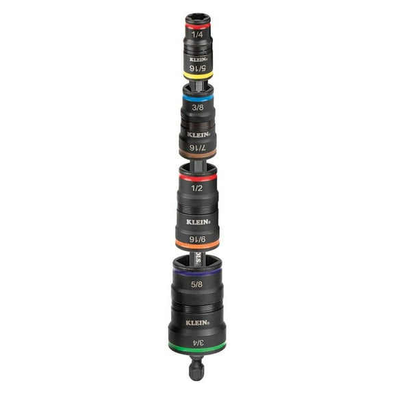 Klein Tools 32930 SAE Magnetic Impact Nut Setter Set, 6-Piece Color Coded Power Nut Driver with Extended Reach, 6 SAE Sizes $40.59