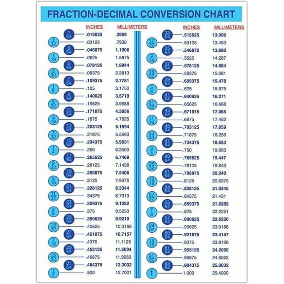 current price $25.90Fraction-Decimal Conversion Chart mm to inches Conversion Chart for Designers Engineers Mechanics Sticker Decal (9.5 in W x 12 H in Sticker)