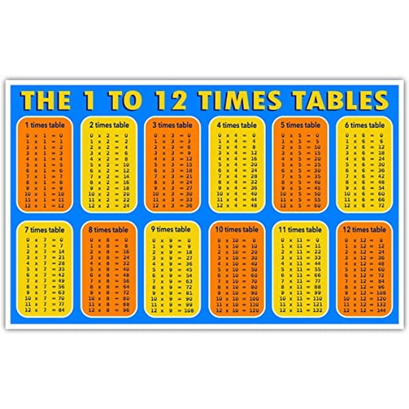 current price $8.95The 1 to 12 Times Tables Multiplication Charts | Help with Math Memorization Sticker Decal 5x8