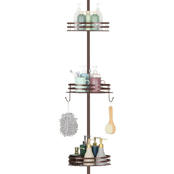 Overall pick Mainstays Tension Rod Shower Caddy, Rust-Resistant 3 Tier Corner Pole Caddy, 5 - 8 ft, Satin Nickel $35.78